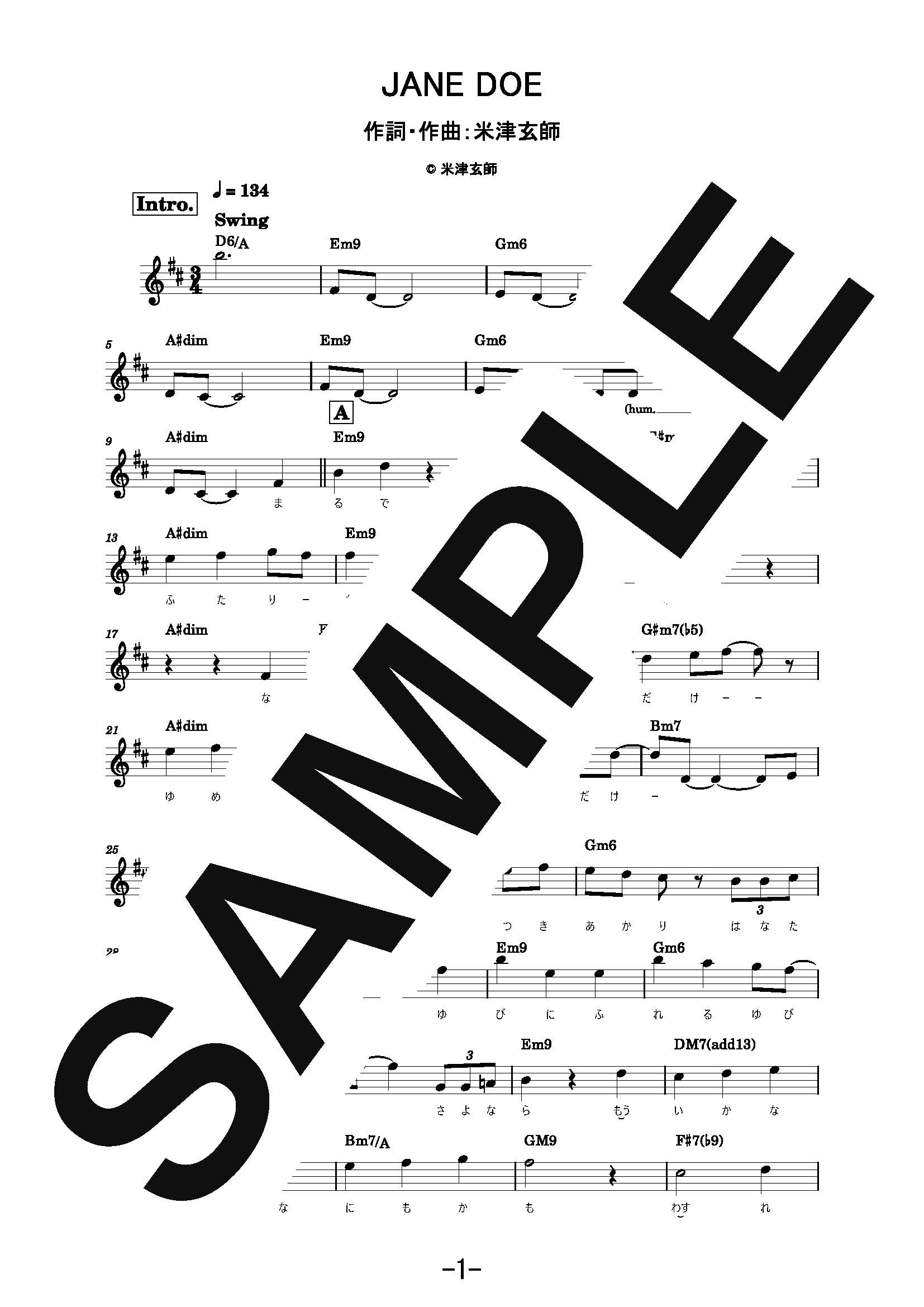 【楽譜】JANE DOE/米津玄師、宇多田ヒカル (メロディ譜)